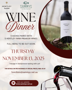 Join us for an unforgettable evening as we celebrate the art of winemaking with a specially curated Hentley Wine Dinner. Indulge in an exquisite multi-course menu crafted by our chefs, perfectly paired with award-winning wines from Hentley Farm.
